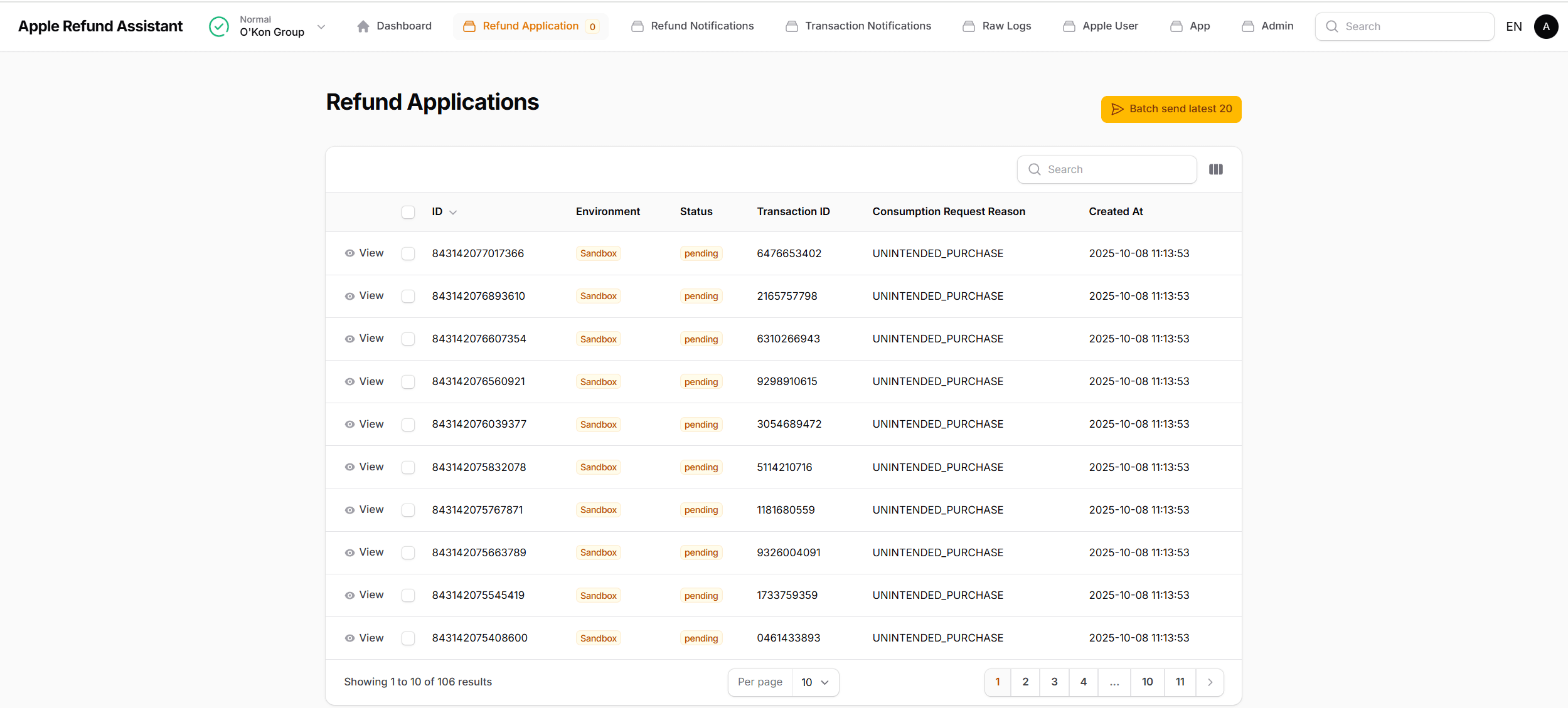 This service is built on Laravel / Filament multi-tenant architecture, effectively helping developers prevent fraudulent refunds by instantly processing Apple’s CONSUMPTION_REQUEST notifications and asynchronously returning consumption data.